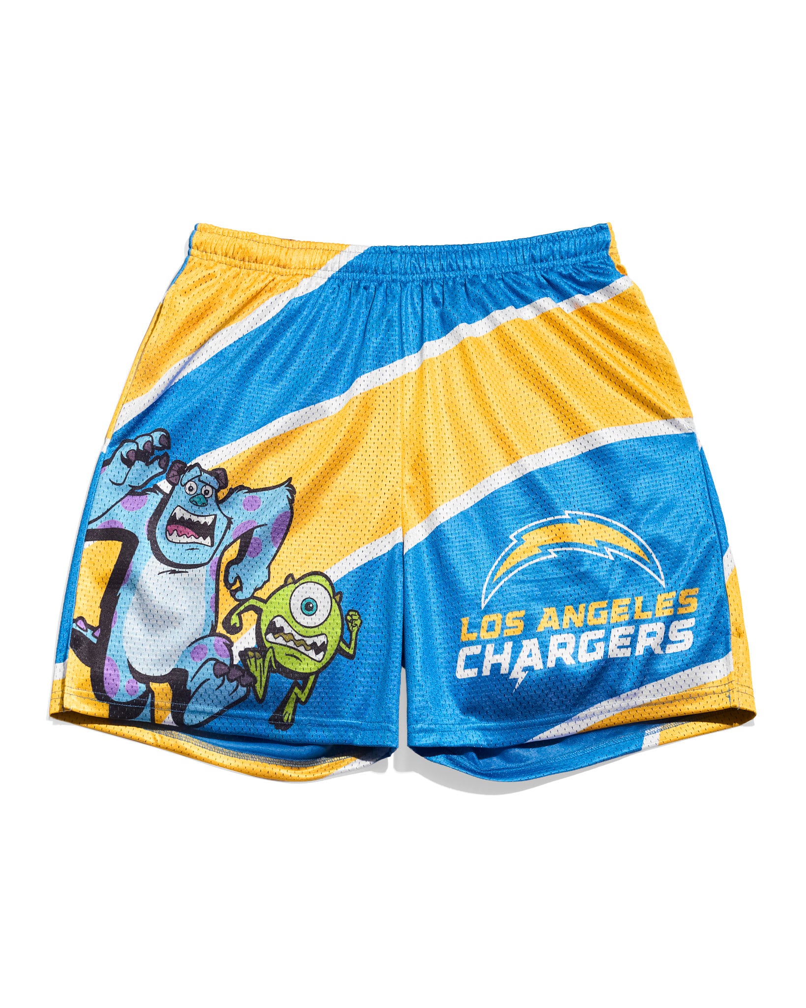 Gear up with a crossover straight out of Monstropolis. These Monsters, Inc. x LA Chargers shorts blend team spirit with Pixar nostalgia, featuring bold character-inspired colors and classic Chargers detailing.